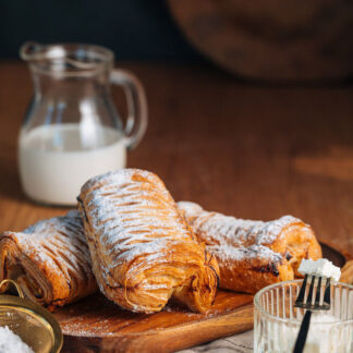 Ruloul nostru cu brânză dulce, asemănător unui strudel, este pregătit cu foi subțiri și fragede, umplute cu o cremă fină de brânză dulce, care se topește în gură. Coaptă la perfecțiune, această delicatesă de 100g este ideală pentru o gustare rapidă sau un răsfăț dulce, oferind un echilibru perfect între aluatul pufos și brânza fină.